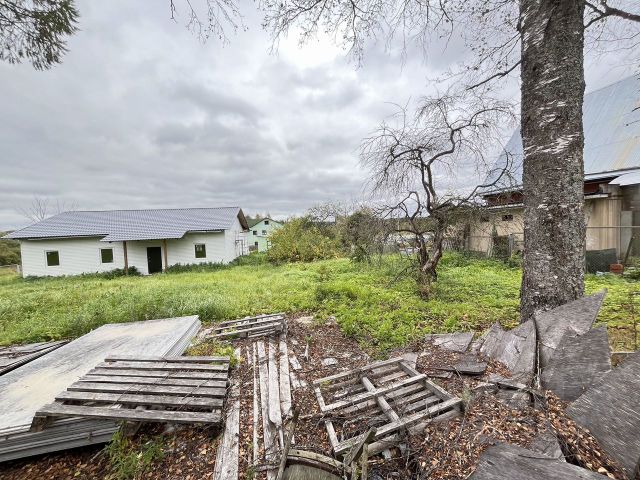 Участок угловой и имеет 2 въезда: основной с воротами и калиткой перед домом и дополнительный со стороны бани, с 2-мя воротами, где площадка для возможности откачки септика; под крытым навесом оборудованы полки для использования под мастерскую.