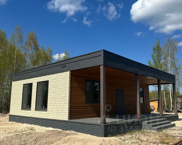 В доме на первом этаже спальня, гостиная, кухня, санузел. На втором этаже две спальни и рабочий кабинет.
