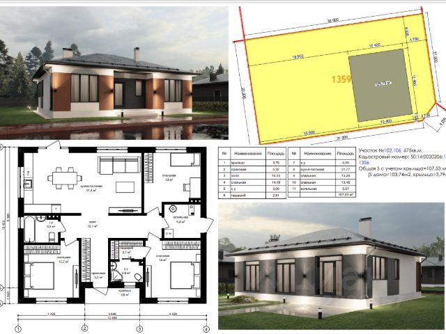 Площадь дома 119,4 кв.м. на земельном участке 6.47 соток.