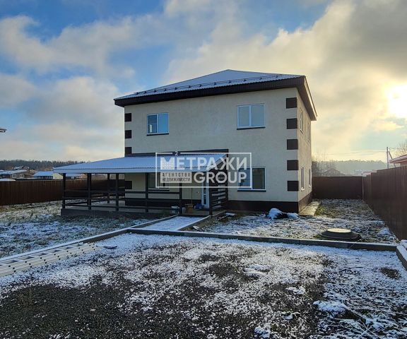 О доме: общая площадь составляет 161 кв.м. В доме расположены 4 спальни: 2 на первом этаже и 2 на втором, имеются гардеробы. Также предусмотрено 3 санузла (один на первом этаже и два на втором), кухня-гостиная и котельная. Участок правильной прямоугольной формы. Фундамент ленточный. Стены выполнены из газосиликатного блока (ширина наружной стены 40 см), имеется монолитный армопояс, усиленные балки, наружная теплоизоляция в три слоя. Крыша из металлочерепицы с мансардными окнами и утеплением Knauf, стеклопакеты двухкамерные Rehau, легкие деревянные утепленные перекрытия 200 мм. Полы также утеплены, толщина "подушки" составляет 50 см, использован фольгоизол, водяной подогрев и керамогранит. Стены оштукатурены гипсом и подготовлены под обои, подоконники пластиковые, котел электрический, перегородки - 250 мм, радиаторы. В доме установлены следующие коммуникации: биосептик Topaz 5 для канализации, водопровод с чистой водой из скважины, электричество 15 кВт с трехфазным подключением и стабилизаторами на каждой фазе. Отопление осуществляется электрическим котлом мощностью от 5 до 12 кВт. Для отделки второго этажа есть все необходимые материалы.