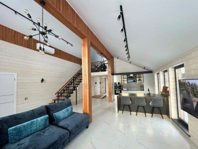 Дом продается со всей мебелью и техникой (холодильник, посудомоечная машина, варочная панель, духовой шкаф, вытяжка, стиральная машина), необходимой для проживания.
