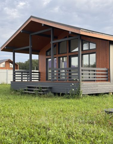 Дом 150 м² общей площади, выполнен в стиле Райт и расположен на участке 7 соток в средней части поселка.