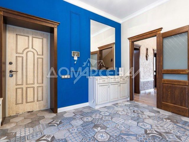 Описание внутренней отделки: выполнена отделка в стиле современной классики. На стенах в холлах - венецианская штукатурка, в комнатах 1-го ( в кабинете -с покрытием воском) и 2-го этажа - обои дорогих премиальных марок. На полу керамогранит (Италия). Лестница из натурального дуба. Установлена сантехника брендов Jacob Delafon, Cezares, Villeroy&Boch, Migliore, Kludi. Теплые полы с водяным подогревом везде, где плитка. Трубопроводы Uponor (Финляндия), стальные радиаторы c термостатами Kermi. Розетки, выключатели Werkel. Конвекторы Eva. Входная дверь с терморазрывом. Межкомнатные двери и наличники из шпона дуба с художественной резьбой, на ж/б каркасе, фурнитура ACB, высота 2 м. Художественная ковка на террасе и балконе. Настенная фреска с пейзажем Италии под заказ у лестницы. Дизайнерские шторы на заказ.