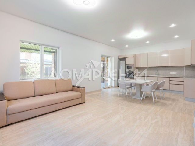 полы инженерная доска и керамогранит, на первом этаже и в с/у второго этажа оборудован теплый пол, установлены панорамные окна, высокие двери, стены отделка штукатурка. На потолке трековые светильники.