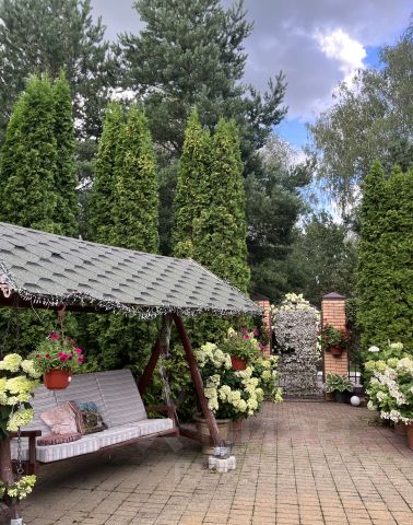 6 соток, ровный, правильной формы. Вокруг дома выполнена подсветка. Высажен газон, хвойные и декоративные деревья. По периметру забор на бетонном основании.