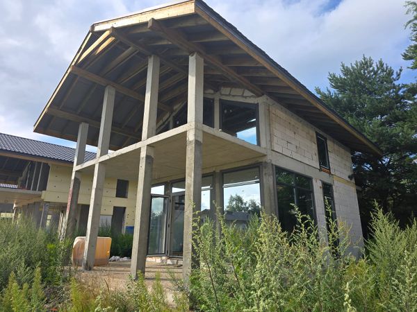 Левая от въезда часть участка свободна, там можно построить еще один дом