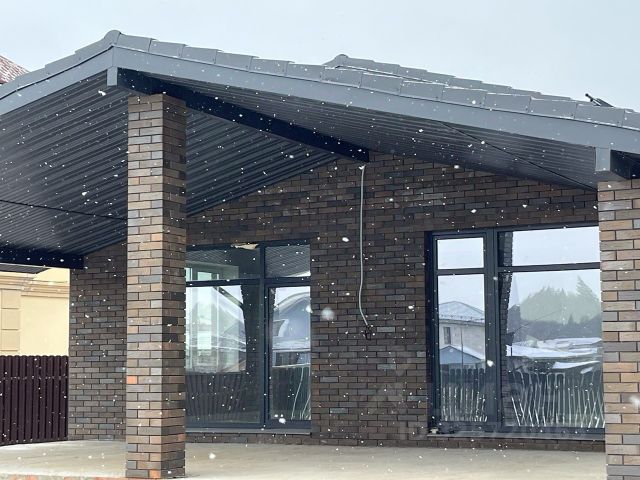Материал стен - газоблок 400мм D400 , фасад - облицовкой кирпичом Brayer, фундамент - монолитная УШП плита 300мм с двойным армированием и наивысшем качеством подготовки, утепление Эппс 50мм, вокруг дома выполнены бетонные отмостки с армированием и утеплением 50мм Эппс. Кровля- двухслойная мягкая черепица Технониколь. Утепление перекрытия крыши 250мм утеплителем Knauf.