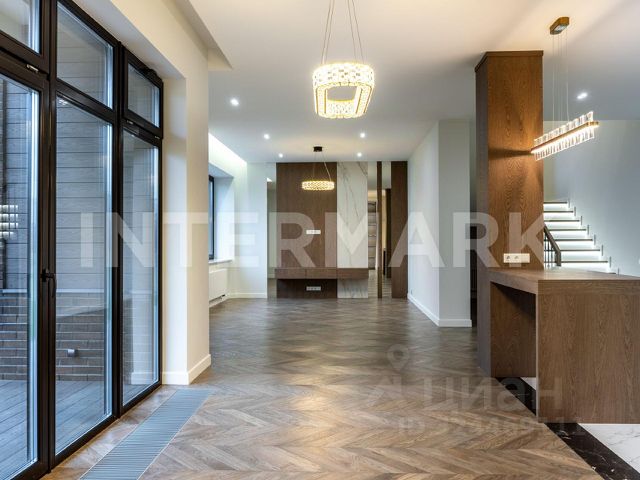 НОВЫЙ дом в коттеджном посёлке Крёкшино — готовое решение для тех, кто ценит сочетание приватности, продуманной инженерии и премиальной отделки. Локация Удобный выезд на платную трассу обеспечивает стабильное и предсказуемое время в дороге: 26 минут до МоскваСити. Рядом — ведущие образовательные учреждения: 10 минут до Московской Экономической Школы, 10 минут до гимназии Святителя Василия Великого и 10 минут пешком до Премьерского лицея. Остановка общественного транспорта непосредственно у КПП. О поселке Крёкшино — один из шести коттеджных посёлков бизнес/премиумкласса на Минском шоссе. Территория приватна и охраняется круглосуточно, на въездах — два КПП. Для комфортного досуга — две современные детские площадки, спортивная площадка, прогулочные аллеи с ландшафтным дизайном и вечерним освещением, зоны отдыха и выход в лес. На смежной территории расположен православный храм. Участок Угловой участок обеспечивает дополнительное пространство и приватность. Дом расположен оптимально — есть место для сада, террасы или летней зоны отдыха. На участке рулонный газон, декоративные деревья, автоматические ворота; парковка с подогревом на 6 автомобилей. Подготовлены выводы под автополив и наружное освещение. Дом и инженерия Капитальное кирпичное строительство с современной архитектурой и большой площадью остекления. Высокие потолки: 1 этаж — 3,4 м, 2 этаж — до 6 м, что создаёт открытое, воздушное пространство. Продуманная инженерия: приточновытяжная вентиляция с двойной фильтрацией, канальная система кондиционирования со скрытыми решётками в потолках, индивидуальное управление температурой в каждой комнате и возможность дистанционного управления климатом и системами дома через WiFi. Интерьер и отделка Премиальная отделка: в санузлах — итальянская плитка и керамогранит; камин оформлен натуральным камнем, подоконники — шпон натурального дуба. Сантехника ведущих европейских брендов (Villeroy Boch, Grohe, Hansgrohe). Все гардеробные и встроенные шкафы выполнены на заказ с учётом эргономики. Меблировано от BoConcept — обеденная группа, мягкая мебель и акцентные элементы. Кратко о преимуществах • Престижная охраняемая локация с быстрым доступом в город. • Угловой участок и большая парковка с подогревом. • Высокие потолки и современная архитектура. • Полноценная умная климатическая система и готовность наружного благоустройства. • Премиальные материалы и мебель от международных брендов.