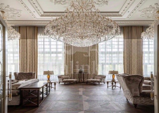 Особенности планировки: 4 спальни, панорамные окна, второй и третий свет, бассейн + сауна + хаммам, бильярдная, бар, каминный зал, лифт, башня-библиотека/винный погреб.