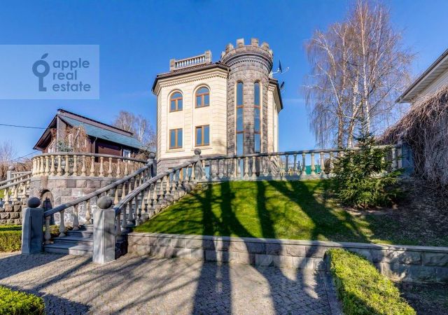 На цокольном и первом этажах основного дома технические помещения, гостиные, кухня и кабинет. На верхних этажах 4 спальни и есть смотровая площадка.