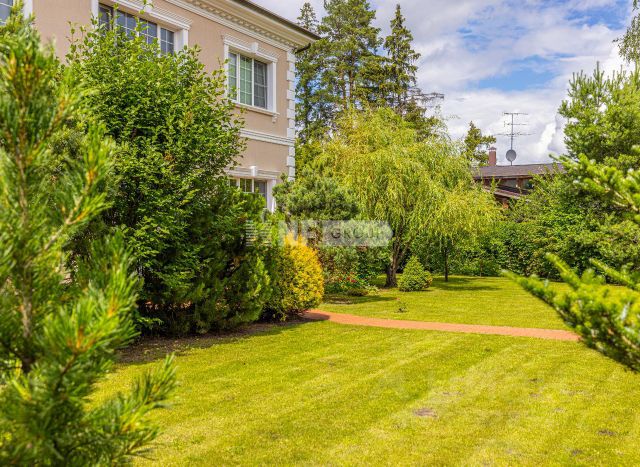 Благоустройство участка: роскошно оформленный и очень ухоженный участок: около 80 высаженных взрослых деревьев и кустарников, в том числе 15 сосен высотой по 8 м, 8 елей (сформированы кроны), 6 голубых елей, корейская кедровая сосна, орешник, можжевельники, декоративные хвойные и другие. Ландшафтный дизайн дополнен идеальным газоном "4 мя