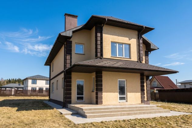Новый современный дом из пеноблока, внешне оштукатурен, площадью 190,5 кв.м. с частичной отделкой.