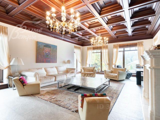 Код объекта в БД Агентства: 170-109. Левитан КП. Коттедж красивой архитектуры в элитном коттеджном поселке, расположенном на берегу реки Пахра в окружении леса. Высокое качество строительства, материалы премиального сегмента: много элементов из массива дуба (кессоны, лестница, аквариум,карнизы, подоконники, двери, окна, полы). Два английских камина с отделкой итальянским розовым мрамором. Облицовка фасада из немецкого клинкерного кирпича. Отличная планировка с богатым функционалом: 5 просторных спален, квартира персонала, кинотеатр, игровая, спортзал. Есть банный комплекс с дровяной печью и джакузи. Огромная крытая беседкка барбекю, а также уникальная беседка с прудом вокруг. Красивый ландшафт со взрослыми деревьями. Клубный поселок со строгой охраной, центральными коммуникациями и обустроенной набережной реки Пахра. Материал стен: кирпич. Облицовка стен: клинкерный кирпич Feldhaus Klinker. Стадия готовности: меблирован. Описание внутренней отделки: дизайнерская отделка в классическом стиле. Авторский дизайн узора столярки, лестницы, витражей, метлахской плитки, роспись над аквариумом. Все материалы использованные в отделке премиального уровня. • Много столярки из дуба: кессоны в холле, гостиной, столовой, санузле, мастер-спальне, потолок на крыльце, лестница, отделка аквариума. • Метлахская плитка в санузлах и кухне. Плитка на стенах в санузлах, душевая в мастер-спальне, фризы на фартуке кухни и камина, с использованием сусального золота, в санузлах фризы из марокканской плитки ручной работы. • В спальнях и коридоре 2 этажа итальянские полы из дуба • 2 английских открытых камина. В гостиной отделка портала итальянским розовым мрамором. В мастер-спальне портал из чугуна. • Дизайнерские чугунные радиаторы. Стены в доме окрашены, стена между игровой и кинотеатром из кирпича ручной формовки. Пол на первом этаже - керамогранит с водяным подогревом, на 2м этаже дубовая доска. Потолки в спальнях подвесные ГЛК. Мансарда, игровая и кинотеатр отделаны лиственницей. Лестница на бетонном основании шириной 1.1 м, отделана дубом. Двери деревянные (Италия UNION-BARAUSSE), подоконники деревянные широкие, из массива дуба. Сантехника Villeroy&Boch. Есть джакузи.. Инженерное обеспечение: газовый котел Viessmann Vitocrossial 300 - 134, бойлер Reflex на 500л. Водоподготовка на поселковом ВЗУ до питьевой воды. Установлен видеодомофон.. Мебель, оборудование: • Кухня полностью из массива. Гранитная столешница с вкраплениями граната, общая длина около 9 м, техника GAGGENAU (Франция, премиальный сегмент). • Обеденная группа на 12 персон. Стол из слэба карагача с эпоксидными вставками. • Итальянская дизайнерская люстра над обеденным столом FLOS (пластик, гипсовый барельеф). • Большой аквариум на 1.5 куб.м • Много мебели Baxter (Италия, премиум сегмент). Мягкая мебель в гостиной, зеркало и кушетка в прихожей и пр. • Книжный стеллаж в гостиной Италия (мраморный цоколь, кожа). • Кинотеатр оборудован проектором и экраном.. Тип участка: с ландшафтом и взрослыми деревьями. Благоустройство участка: на участке красивый ландшафт: дорожки на сваях и бетонном фундаменте, вымощены клинкерной брусчаткой и освещены. Много взрослых деревьев: кедры, клены, липы, ели, можжевельники. Ухоженный газон, разведен автополив, дренаж вокруг дома и по участку.. Дополнительные строения: • Банный комплекс 48 кв.м с навесом 48 кв.м: сауна ( 