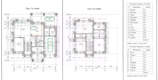 Планировка дома 1 этаж: прихожая, большая гостиная со вторым светом, камином и зоной столовой, кухня с выходом на открытую террасу, кабинет, сауна, санузел, душевая, гостевой санузел, постирочная, котельная. 2 этаж: мастер-спальня со своим санузлом, гостевой санузел, 2 спальни, большая гардеробная, холл второго этажа.