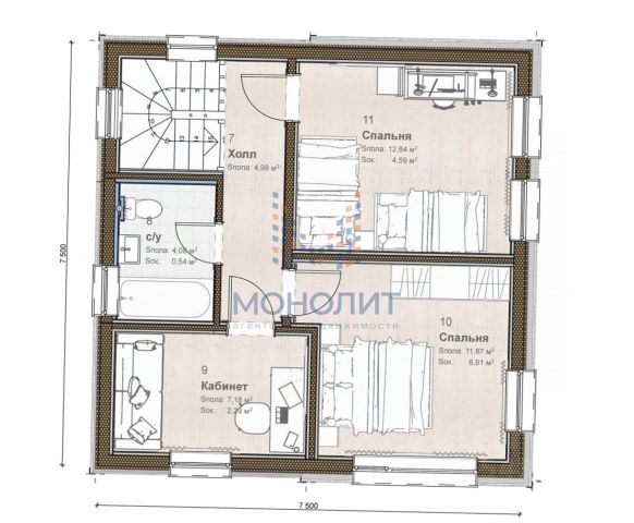 Мансарда: спальня 5 (25), спальня 6 (24,5), спальня 7 (18,6), бильярдная (48,1), ванная комната (3,3)