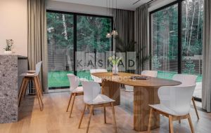 В основном доме удобно сочетаются большие зоны остекления с функциональным зонированием на главные места притяжения: кухня, столовая и гостиная с двухсторонним камином с выходом на террасу. Полы в доме на первом этаже выполнены из керамогранита с проложенным теплым водяным полом. Полы в жилых комнатах и в холлах выполнены из массива дуба и находятся в идеальном состоянии. Вся техника премиальных мировых брендов (Miele, Neff, Bosch) установлена в санузлах и на кухне. Все жилые комнаты оснащены кондиционерами, по дому разведена приточно-вытяжная вентиляция.