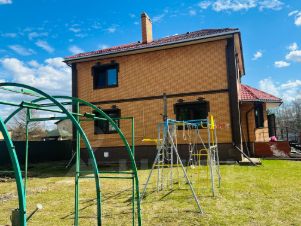 Резиденция площадью 2400 кв.м на лесном участке 61,4 сот расположена на престижном западном направлении в элитном поселке.