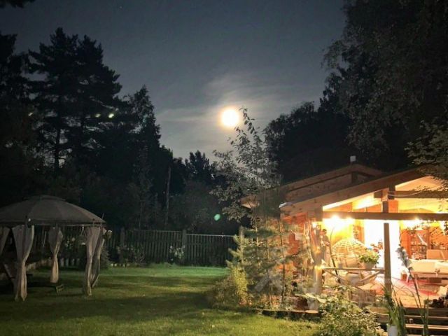 Дом расположен на лесном участке в дальней тихой части поселка. Для семьи и гостей используется главный въезд на территорию домовладения, для персонала устроен отдельный въезд.