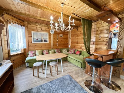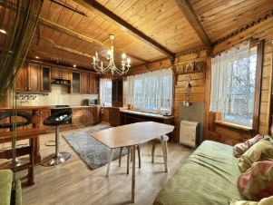 1-й этаж-3 комнаты (большая гостиная, кабинет, кухня-столовая), а так же душевая комната и туалет (85,3 кв.м.),h=3,38.