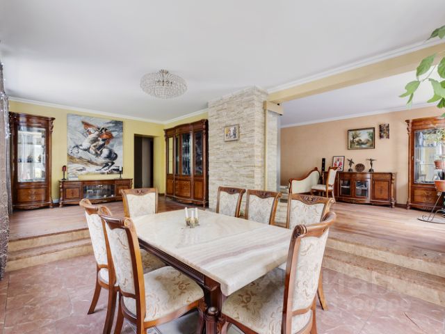 1-й этаж: холл, второй свет, гардеробная, с/у, зал с камином, столовая, кухня, теплая застекленная веранда с барбекю и тандыром, гостевая зона со спальней, кабинетом, с/у и отдельным выходом во двор, бильярдная с русским бильярдом, гардеробная с сейфовой комнатой, постирочная, 20-метровый бассейн с противотоком и детской секцией, русская и финская бани, комната массажа, зона релакса.