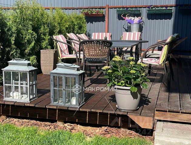 На участке гармонично сочетаются зрелые лесные деревья и плодовые насаждения, создающие уютную и живописную атмосферу. Красивый ландшафт, тщательно продуманный дизайн, безупречное сочетание растений, придают участку неповторимый шарм, беседка с барбекю, уникальная авторская беседка из дуба, искусно выполненная вручную. Гараж на одно м/м и просторная парковка. Все дорожки вымощены красивой брусчаткой, тщательно продуманное освещение.
