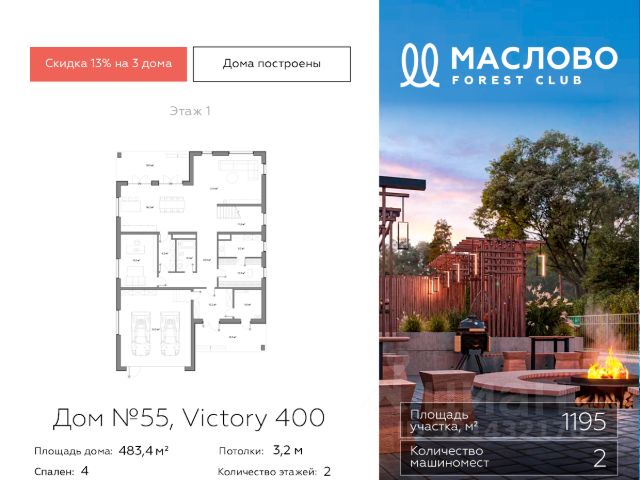 На участке - отдельно стоящий гараж на 6 машиномест, помещение охраны, хозяйственный блок и квартира для персонала. Простор позволяет разместить террасы, зоны барбекю, бассейн и прогулочные маршруты. Ландшафт выполнен с учётом приватности и видов на зелёный массив.