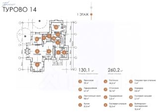 Коттедж подойдет для постоянного проживания большой семьи: 4 спальни, 3 санузла, кухня-гостиная с выходом на большую крытую террасу.