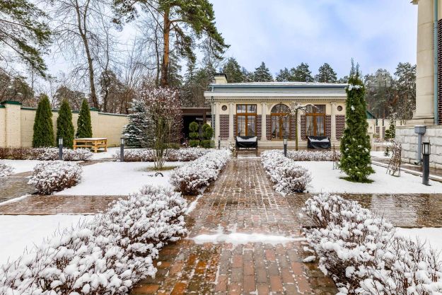 Уникальные интерьеры подчеркивают благородные материалы: теплые тона натурального дерева оконных рам по всему дому создают особую атмосферу, а высота потолков от 3,5 до внушительных 4,5 метров наполняет пространство светом и воздухом. Центрами притяжения и уюта станут два дровяных камина: один из них истинное произведение искусства, изысканно отделан и украшен полупрозрачным ониксом.
