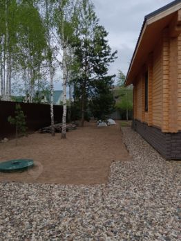 Участок правильной прямоугольной формы, откатные ворота с дистанционным пультом, стоянка под навесом на 2 автомобиля, площадка перед домом свободного назначения, вмещает до 8 машин. Беседка, мангальная зона. На участке засажены хвойные и лиственные деревья, кустарники и цветы.