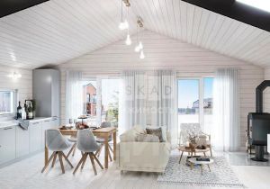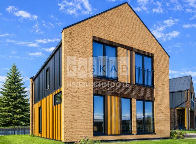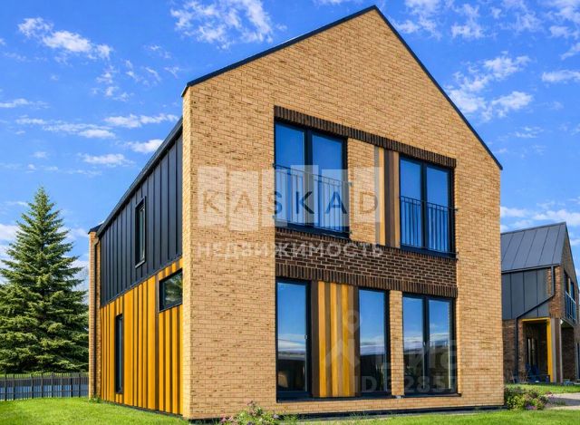 Дом выполнен в стиле гибридный канадский деревянный дом Шале.