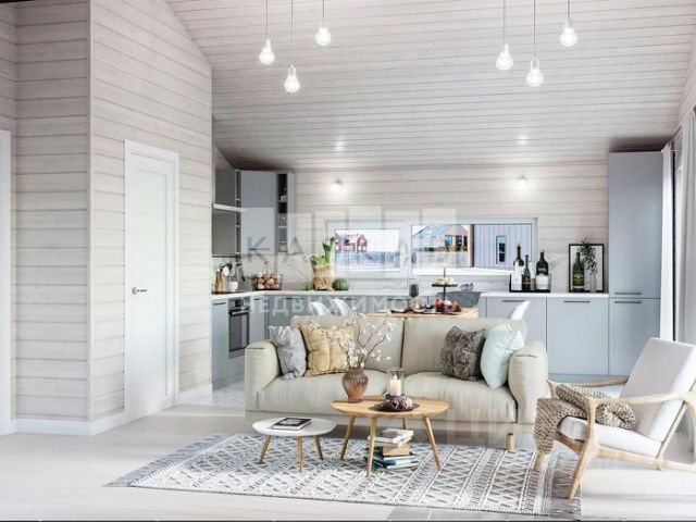 Дом состоит из двух строений разделенных стеклянным коридором, в одной части дома "малой" расположены все технические помещения включая кухню, в "большом доме" расположены все жилые зоны для максимальной комфортности проживания.