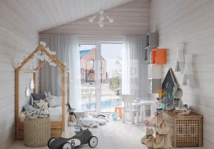 2-й этаж. Второй этаж дома представляет собой мансарду и включает в себя: спальня 1, спальня 2, с/у, холл 2-го этажа/детская игровая зона.
