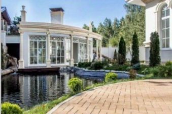 Общая площадь строений 750 кв.м. Это основной дом 430 кв.м., беседка во дворе, гараж и квартира для персонала.