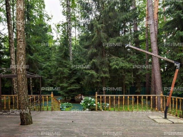21 сотка, ровный, огорожен забором на бетонном основании. На участке взрослые лесные деревья, газон. Выполнено освещение, парковка и дорожки выложены брусчаткой. Есть гараж 125 кв. м с квартирой для персонала. Соседи все построены.