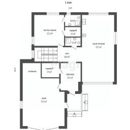 1 этаж: большой холл с парадной мраморной лестницей, лифтом, гардеробной и выходом в сад; гостиная с эркером, кухня-столовая, каминный зал, кабинет, бильярдная с выходом в сад, спортзал с теннисным столом, раздевалка, СПА-зона: хамам, финская сауна, душевые, с/у; лестница на второй этаж в зону отдыха, постирочная, бойлерная, гараж на 3 а/м с оборудованной квартирой для персонала на втором этаже и с отдельным входом;