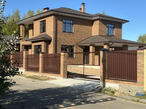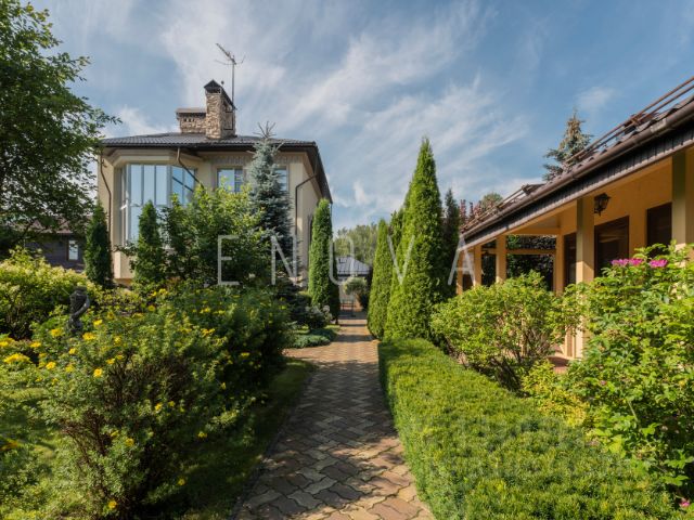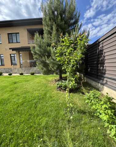 Участок 25 соток правильной формы, огорожен забором на бетонном основании, установлены ворота с электроприводом, автополив, выложены брусчаткой дорожки и придомовая территория. К дому примыкает капитальный гараж, оборудован большой навес во дворе. На участке растут взрослые и молодые деревья: сосны, березки, ели, туи, уложен газон, посажены декоративные растения и фруктовые деревья. По участку бегают рыжие белки.
