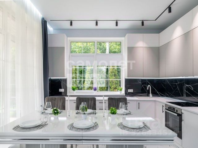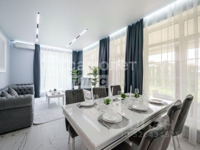 Лот 58653. Дом под отделку 422 кв.м. на участке 15.88 соток. Количество спален: 4. Коттеджный посёлок "Синергия", Калужское шоссе, 10 км от МКАД. Земельный участок расположен на тихой тупиковой улице посёлка и имеет свой индивидуальный выход в лес. Выверенные пропорции дома и лаконичное сочетание современных отделочных материалов создают привлекательный образ загородной архитектуры, органично и деликатно вписанной в природный ландшафт. Дом представляет собой компактное одноэтажное разно-высокое здание в модном современном стиле с плоской кровлей и панорамным остеклением. Общая площадь застройки - 458 кв. м. В сторону улицы обращены вход в дом и парковка на два автомобиля, объединенные единым массивным навесом-козырьком. Основное жилое пространство дома включает в себя кухню с островом, столовую и гостиную с каминной зоной, все эти зоны объединены между собой и обращены вглубь участка. Высота потолков в этой части дома 4,5 метра, оконные проемы начинаются прямо от пола, что обеспечивает большую освещенность в дневное время и визуально расширяет пространство. Продолжением дома является опоясывающая просторная открытая терраса с зоной барбекю, перекрытой декоративной перголой. Планировка дома: Прихожая (7,8 кв.м.), гардеробная (6,6 кв.м.), гостевой санузел (3,2 кв.м.), гостиная-кухня-столовая (76,5 кв.м.), холл (24,2 кв.м.), кабинет (13,4 кв.м.), мастер-спальня (26,4 кв.м.), мастер-ванная (8,0 кв.м.), мастер-гардеробная (5,7 кв.м.), спальня-2 (18,7 кв.м.), гардеробная-2 (3,2 кв.м.), спальня-3 (18,3 кв.м.), гардеробная-3 (3,2 кв.м.), ванная (6,2 кв.м.), постирочная (9,8 кв.м.), кладовая (3,2 кв.м.), котельная (5,4 кв.м.), терраса (81,6 кв.м.), авто навес (57,8 кв.м.).