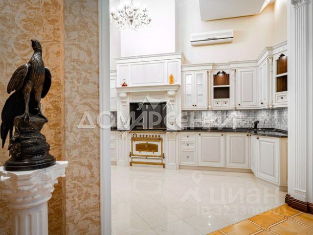 Код объекта в БД Агентства: 316-959. Согласие-1 к/п. Красивый и солидный дом в классическом стиле, с премиальной отделкой и мебелью. На участке также с гараж на 2 автомобиля с квартирой для персонала и домик для приема гостей с теплой отапливаемой кухней-столовой и летней зоной барбекю. В доме эффектная двухсветная гостиная, бильярдная со столом максимального размера, кинозал, сауна с купелью. Шикарный облагороженый участок с множеством взрослых деревьев - плодовых и декоративных. Статусный востребованный поселок с центральными коммуникациями. Материал стен: кирпич. Облицовка стен: фасадная декоративная штукатурка, рустовка углов и окон, цоколь облицован искусственным камнем. Стадия готовности: меблирован. Описание внутренней отделки: выполнена классическая отделка дома с многоуровневыми потолками из гипсокартона, лепниной и большим количеством освещения. В отделке использованы натуральные материалы, мрамор, гранит, коллекционная плитка, на втором этаже ковролин, ламинат. Стены в комнатах покрашены, в санузлах плитка. Лестница железобетонная шириной 1,2 м, ступени из мрамора, с коваными патинированными перилами. Все санузлы укомлектованны необходимой сантехникой: круглая ванная-джакузи, душевые кабины, унитазы, биде, раковины. Все коммуникации разведены под ключ, теплые полы везде, где плитка, розетки и выключатели SIMON, радиаторы KERMI. Межкомнатные двери МДФ, светлые с филенками.. Инженерное обеспечение: в доме установлены котел газовый напольный WOLF, бойлер REFLEX 300 л, многоступенчатая система очистки воды. В каждой комнате кондиционеры Panasonic. Бензиновый генератор VANGUARD (питает весь дом).. Мебель, оборудование: все комнаты укомплектованы роскошной итальянской мебелью в классическом стиле или барокко. Установлен кухонный гарнитур со столешницей из натурального гранита со встроенной газовой плитой, встроенная духовка и микроволновка BOSH, холодильник LIEBHERR, полубарный остров со столом и стульями 4 шт., обеденная группа из массива дерева. Большое арочное зеркало в холле, телевизоры, диваны, изящные журнальные столики и консоли и комоды. В двусветной гостиной многоярусная хрустальная люстра, окна украшены шторами с ламбрекенами, на полу ковер.. Тип участка: с ландшафтом и взрослыми деревьями. Благоустройство участка: облагороженный участок со множеством взрослых декоративных и плодовых деревьев, организована система автополива (9 контуров) по всему участку, вымощены дорожки, газон.Целый яблоневый сад разных сортов, сливы, груши, вишни, черешни... Более 20 туй, клены, каштаны, осины, декоративная береза, множество кустарных растений, круглые туи и 6 рододендронов, можжевельники, лиственница. Пионы и тюльпаны. Кустарники: крыжовники, смородина черная и красная. Организован дренаж по всему участку с выводом в центральную ливневую систему.. Дополнительные строения: - Гараж с квартирой персонала площадью 75 кв.м, кирпичный, в стиле основного дома: 1-ый этаж: гараж на 2 авто, отапливаемый, на 2-ом этаже квартира персонала (с кухней и санузлом); - Домик для приема гостей 73,2 кв.м, капитальный, всесезонный, в стиле основного дома, с отапливаемой частью ок.40 кв.м (отапливается электричеством - теплые эл. полы и конвекторы, окна ПВХ, мягкая кровля), в которой полностью оборудованная мебелью и техникой кухня-столовая, кладовая, гостевой санузел и неотапливаемой