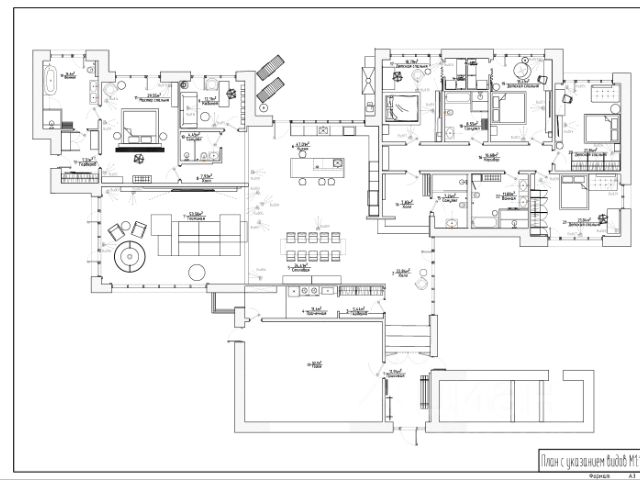 Описание внутренней отделки: выполнена классическая отделка дома с многоуровневыми потолками из гипсокартона, лепниной и большим количеством освещения. В отделке использованы натуральные материалы, мрамор, гранит, коллекционная плитка, на втором этаже ковролин, ламинат. Стены в комнатах покрашены, в санузлах плитка. Лестница железобетонная шириной 1,2 м, ступени из мрамора, с коваными патинированными перилами. Все санузлы укомлектованны необходимой сантехникой: круглая ванная-джакузи, душевые кабины, унитазы, биде, раковины. Все коммуникации разведены под ключ, теплые полы везде, где плитка, розетки и выключатели SIMON, радиаторы KERMI. Межкомнатные двери МДФ, светлые с филенками..