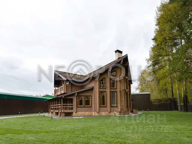 Код объекта в БД Агентства: 116-213. Дом с готовой свежей отделкой и мебелью из элитного клееного бруса (ангарская сосна): высокое качество строительства и отделки. В доме - высокие потолки, гостиная со вторым светом, большая площадь остекления с эффектными энергосберегающими окнами из массива сосны, 5 спален, в том числе 2 мастер-спальни (и 2 спальни - на первом этаже). В отделке сочетаются натуральное дерево и премиальные импортные материалы. В гостиной установлен трехсторонний дровяной камин. Дом стоит на просторном участке с великолепной территорией и выходом в лес: на участке - корабельные сосны, дубы, безупречный газон, организована большая парковка (на 10 машин и более), есть домик для персонала. Участок находится в камерном коттеджном посёлке.