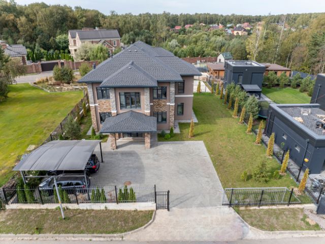 Лот: 9912854. Дом с мебелью 1330 кв.м на участке 30 cот. Кол-во спален: 11. Кол-во с/у: 12. Поселок "Президент". Калужское шоссе, 8 км от МКАД. Без комиссии для покупателя. Внутренняя отделка дома и мебель выдержаны в классическом стиле с использованием качественных натуральных материалов: мрамор, гранит, массив дуба, керамогранитвсе европейских производителей (Италия, Германия, Испания). Дом полностью меблирован от известных мировых брендов (Versace, Scavolini, Angelo Cappellini, Arredo, Alta Moda, Radomir, Asnaghi Leonardo), дорогой сантехникой, в каждой ванной комнате есть джакузи. Фундамент ленточно-монолитный, стены — кирпич + утеплитель + фасадный кирпич. Кровля-металлочерепица. Окна — тройные стеклопакеты. Установлены водосточная и ливневая системы. Высота потолков — 3.05 м. Планировка домов: 1 этаж: прихожая холл, гардеробная, техническая комната с рабочей кухней, котельная/постирочная, кухня-столовая с выходом на крытую террасу, гостиная с камином, гостевая спальня со своей ванной комнатой, кабинет; 2 этаж: хозяйский блок: спальня, гардеробная, ванная комната; 2 спальни со своими ванными комнатами; 3 этаж: просторный холл свободного назначения (кинотеатр, бильярдная, фитнес); Спа-зона:сауна, хамам, душевые, с/у, комната отдыха, системы хранения. Двухэтажный гостевой дом (148 кв. м): 3 спальни, 2 с/у, гостиную, кухню, 2 гаража. Благоустроенный участок 30 соток, огражден по периметру, выполнен широкий заезд и парковка, вымощены дорожки, озеленен, по периметру высажены туи и крупномеры, установлено освещение, в дальней части участка благоустроена зона-барбекю. На участке расположены два дома, гараж на 2 а/м с блоком для проживания персонала и гостевой дом с гаражом на 2 а/м. Дома расположены на участке 30 соток в коттеджном поселке премиум-класса "Президент", Москва. Коттеджный посёлок расположен в 8 км от МКАД по Калужскому шоссе, на территории необыкновенного по красоте лесного массива.Особенность поселка "ПРЕЗИДЕНТ" - особое ландшафтное решение позволяющее создавать эффект "собственного мирка", избегая присущее многим поселкам ощущения тесноты.