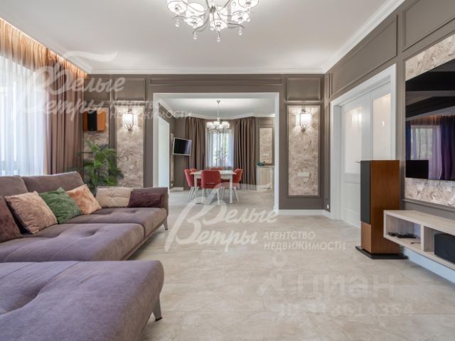 Мебель, оборудование: дом полностью укомплектован мебелью, техникой, декором. На кухне фирмы ARVA - гарнитур длиной около 9 м с островом, фасады изготовлены из массива ясеня, столешница - кварцевый агломерат, вся фурнитура BLUM. Подсветка в каждой тумбе, встроенная техника (Asko, Bosch, Siemens), посудомоечная машина (с подсветкой и сушкой), 2 холодильника, малошумная вытяжка NEFF Germany. Обеденная группа со столом длиной 180 см-300 см (до 12 человек) и стульями из массива дуба. В гостиной диван-трансформер с подвижной спинкой (КОСТА БЕЛЛА), ТВ (77-дюймов, элитной серии, LG OLED 77C1RLA), домашний кинотеатр с колонками Bowers & Wilkins (Англия), ресивер Denon AVG-X4700H (трехзонная система Мульти-рум - на гостиную, кухню-столовую и зимний сад). Во всех спальнях спальные гарнитуры. В каждой комнате - встроенные шкафы из МДФ (эмалированными, с филенчатыми фасадами) в едином классическом стиле. Есть тренажеры: силовой Hastinngs и велотренажер Bronze Gym. В санузлах: дорогостоящая сантехника, двухместная ванна с гидромассажем (SSWW, Германия, модель А4104 COST 140) в санузле при мастер-спальне, немецкая душевая кабина Dinke, унитазы с инсталляциями, смесители HansGrohe, в том числе душ скрытого монтажа с термостатом..