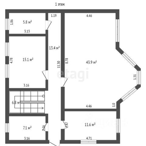 1 этаж: большая, уютная прихожая, современная кухня с островом, встроенной техникой, совмещенная с гостиной с дизайнерской отделкой, кинотеатр, спальня, кабинет, санузел с душевой, постирочная, котельная.