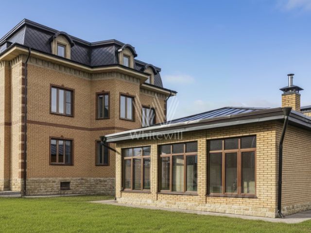Номер объекта: 8088. Современный загородный дом, площадью 453 кв.м., на ровном, зеленом участке 15 соток в охраняемом коттеджном поселке Гайд Парк. • Домашний кинозал. • Высокие потолки: 3,2м. • Летняя терраса с кострищем. • Центральные коммуникации. • Коммунальные платежи: 10.000руб. ПЛАНИРОВКА:, Цоколь: холл, зона домашнего кинотеатра, технические помещения. 1 этаж: холл, кухня-столовая, гостиная с выходом на веранду, кабинет, санузел. 2 этаж: холл, мастер спальня с ванной комнатой, 2 спальни, санузел, постирочная. Просторный ровный участок с ландшафтным дизайном, выполнен дренаж с выводом в ливневую систему, разведено уличное освещение. Высажены хвойные деревья и кустарники. Перед домов парковка на 2 авто (вымощена брусчаткой), участок огорожен забором с автоматическими откатными воротами. Летняя терраса с кострищем. ИНФРАСТРУКТУРА: Коттеджный поселок "Гайд Парк" расположен на территории Новой Москвы в 23 км от МКАД по Калужскому шоссе. Территория поселка круглосуточно охраняется (патрулирование, видеонаблюдение), въезд на территорию через контрольно-пропускной пункт. Внутри поселка широкие, вымощенные брусчаткой, дороги с уличным освещением, детская и спортивные площадки (футбол, волейбол, столы для пинг понга), облагорожен пруд с пляжной зоной, прогулочная зона в сосновом бору, родник с питьевой водой. Перед въездом расположен парк "Редут времен Отечественной войны 1812г." с прогулочными зонами и детскими площадками, остановки общественного транспорта, автобусы ходят до МЦД Подольск, метро Теплый Стан и до г. Троицк. В 800м находит частная школа "Ника", в 1,5км - Курорт Красная Пахра "Амакс", в 2,5км находится рыбный ресторан "Моремания", в 4км - киностудия "Москино" (кинотеатр, рестораны, парки, прогулочные зоны). Ближайшие населенные пункты с городской инфраструктурой: с. Красная Пахра, г. Троицк. -------- Эксперты агентства недвижимости "NEOPOLISDOM" ежедневно готовы ответить на Ваш звонок и провести для Вас показ дома в любое удобное для Вас время! Мы оказываем помощь нашим клиентам в оформлении ипотеки. Сотрудничаем с агентствами и частными брокерами на выгодных условиях!