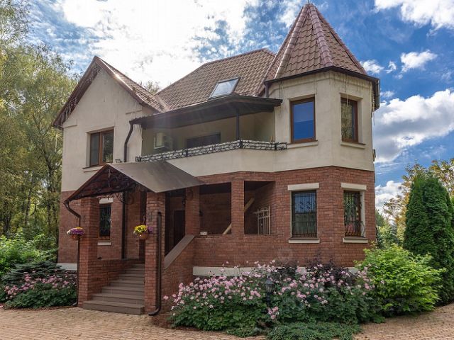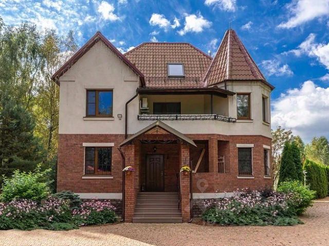 Описание внутренней отделки: выполнена классическая отделка дома с многоуровневыми потолками из гипсокартона, лепниной и большим количеством освещения. В отделке использованы натуральные материалы, мрамор, гранит, коллекционная плитка, на втором этаже ковролин, ламинат. Стены в комнатах покрашены, в санузлах плитка. Лестница железобетонная шириной 1,2 м, ступени из мрамора, с коваными патинированными перилами. Все санузлы укомлектованны необходимой сантехникой: круглая ванная-джакузи, душевые кабины, унитазы, биде, раковины. Все коммуникации разведены под ключ, теплые полы везде, где плитка, розетки и выключатели SIMON, радиаторы KERMI. Межкомнатные двери МДФ, светлые с филенками..