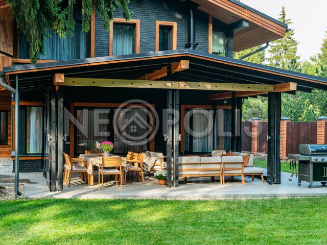 Номер объекта: 3457. Эксклюзивно в НЕОПОЛИС-ДОМ. • Стильный, современный кирпичный дом 345,6 кв.м. под ключ с мебелью в идеальном состоянии, в охраняемом коттеджном поселке "Ирбис" • Отделка фасада камнем и лиственницей — сочетание, которое не теряет актуальности и десятилетиями смотрится статусно. Во внутренней отделке использованы эко-материалы, которые оценят любители натуральной эстетики. • Центр дома-гостиная с двусторонним камином, здесь собираются, отдыхают и принимают гостей • Из гостиной — прямой выход на террасу, где утром можно пить кофе, а вечером — устраивать ужины. Планировка: 1 этаж: прихожая, гардеробная, кухня столовая, гостиная, терраса, гостевая спальня с ванной, сауна, комната отдыха, душевая, отдельный санузел, постирочная, котельная, тёплый гараж на два авто, навес для садовой техники. 2 этаж: Мастер-спальня со своей ванной и гардеробной, спальня с санузлом, две спальни, кабинет, санузел. Участок — 12 соток, прилесной, с вековыми елями, которые создают атмосферу уединения и природного спокойствия. Правильная форма участка позволяет размещать зоны отдыха так, чтобы никто никому не мешал. Въезд через автоматические ворота. Парковка на 3 автомобиля. Инфраструктура посёлка: • Удобный подъезд к поселку как с Киевского, так и с Калужского шоссе. • В поселке есть обустроенная зона отдыха с детской площадкой, а также выход в лес, что делает доступными полезные для здоровья прогулки на свежем воздухе. • В пешей доступности храм Уварово • В 5 минутах езды на авто Русская теннисная академия, Торговый комплекс, включающий в себя Перекресток, химчистку, цветы, фермерский магазин, кафе, пекарня и т.д. • Так же в 5 минутах на автомобиле доступна инфраструктура пятизвездочного Теплеево Отель & SPA • В 4 км от поселка находится г. Троицк с развитой городской инфраструктурой, включающей в себя школы, лицеи, детские сады, частные и государственные медицинские учреждения, фитнес-центры, магазины, кафе и рестораны, эко-маркеты и конно-спортивные школы. ИРБИС — это посёлок, где сочетаются тишина, приватность и доступность городской инфраструктуры.