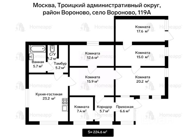 Номер лота: 95398. Ищете возможность создать свой загородный рай? Предлагаем дом, общей площадью 224.6 м2, требующий ремонта, но с великолепным ухоженным участком в 22 сотки! Здесь вы сможете воплотить в жизнь свои мечты о загородной жизни: построить новый дом, разбить сад, обустроить зону отдыха. Дом построен из сруба и бруса, обложенный кирпичом. Коммуникации центральные, скважина. Участок 22 сотки: ухоженный, с небольшим уклоном, с плодовыми деревьями и кустарниками. На территории есть 2 гаража и хозпостройки. Инфраструктура: Рядом с домом есть все необходимое для спокойной и размеренной жизни. Сетевые магазины, поликлиники, аптеки, рядом также расположена Усадьба Вороново", санатории и т.д. До Москвы можно добраться как на автомобиле - 40 км до МКАД, так и на общественном транспорте до ст. метро "Тёплый Стан" - остановка напротив дома. Отличное место для отдыха и восстановления сил. Документы: Основание права собственности - ДКП, 1 собственник, без обременений. Юридическое сопровождение сделки. Звоните и приезжайте, чтобы оценить всю красоту этого места!