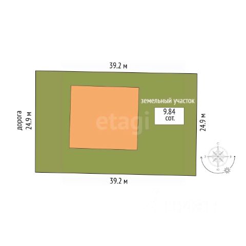 - участок 9,84 сотки. Прямоугольный, правильной формы;
