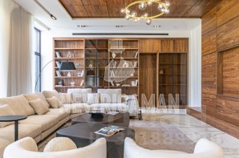 1-й этаж: прихожая, гардеробная, холл, гостиная-кухня-столовая, кладовая при кухне, с/у, кабинет, спальня с с/у, кабинет, зона СПА с бассейном, сауной, хамамом, блок для персонала (с двумя спальнями), постирочная, котельная, гараж на четыре автомобиля.