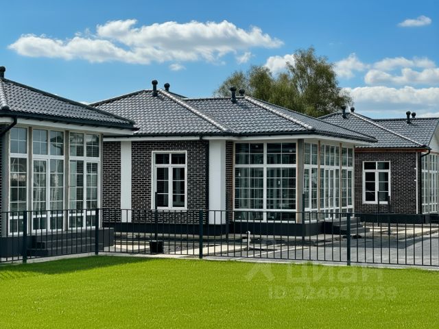 Кровля: цементно-песчаная черепица, смотрится солидно и не стучит от дождя.